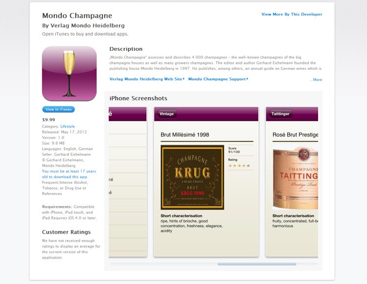 Für den Wein- und Champagnerexperten des Mondo-Verlags Gerhard Eichelmann wurde eine iPhone App programmiert.
