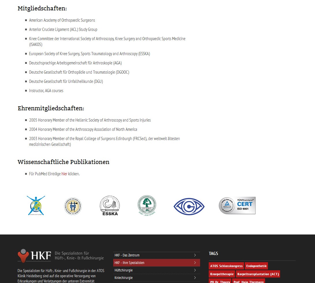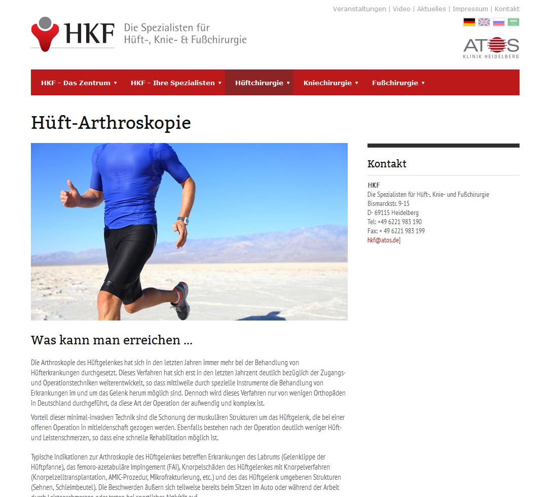 Eine neue Seite auf platoCMS Basis für die Website über Informationen zu Hüft-, Knie- und anderen orthopädischen Gebieten.