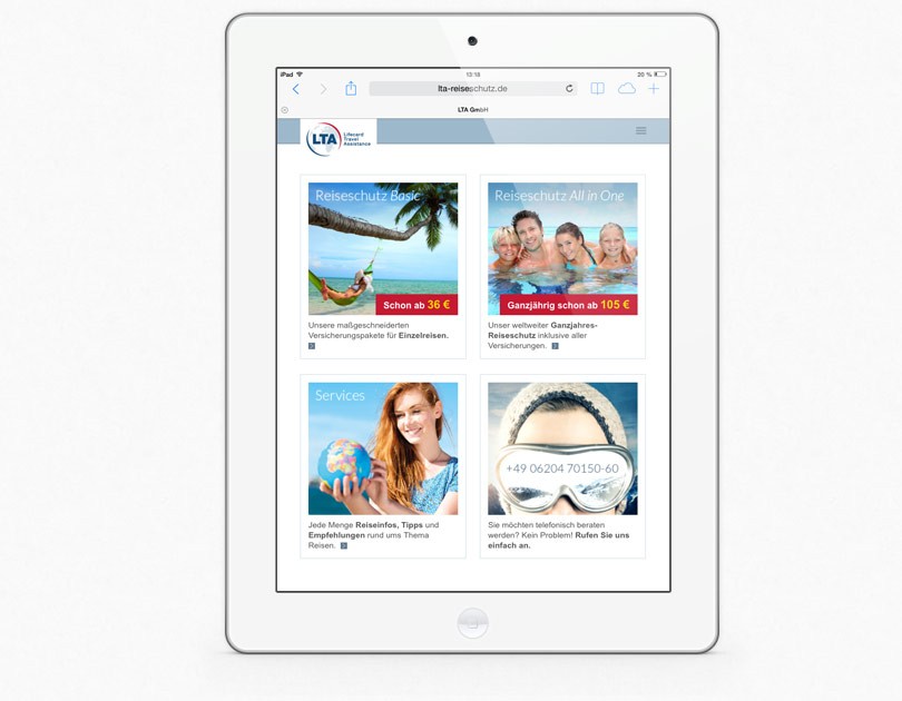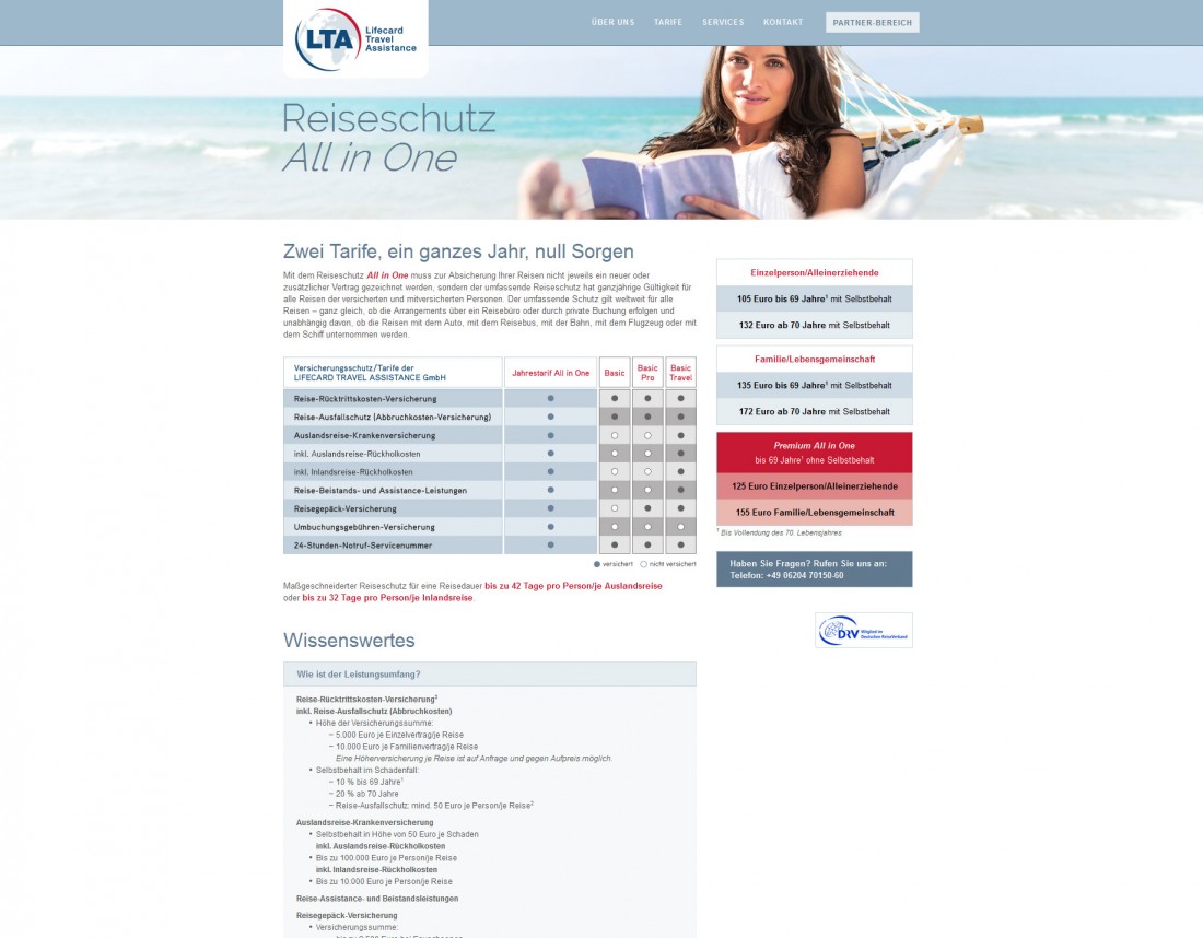 Relaunch des kompletten Web-Angebots der LTA Reiseversicherung.