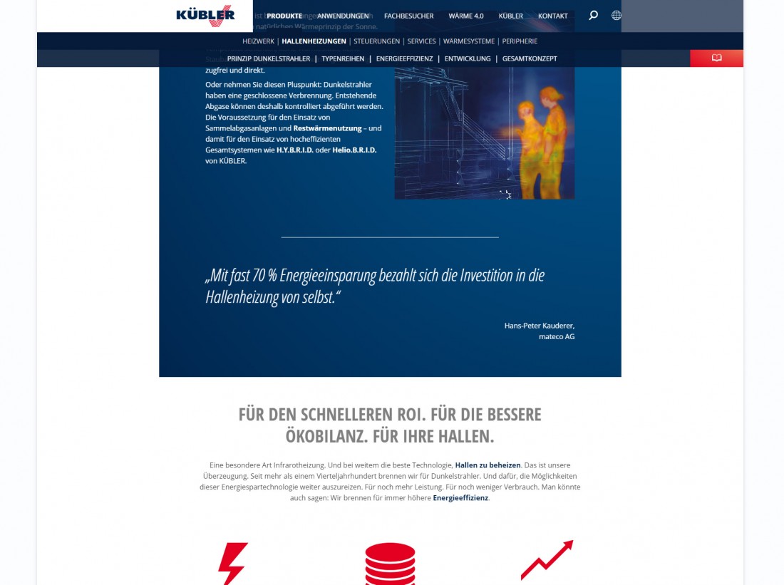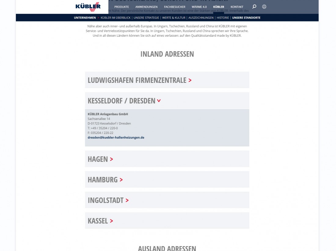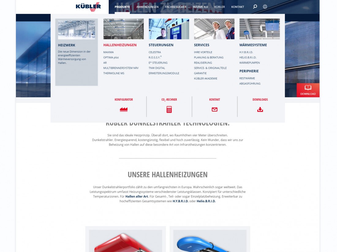 Für die Firma Kübler wurde eine umfassende Seite in mehreren Sprachen erstellt.