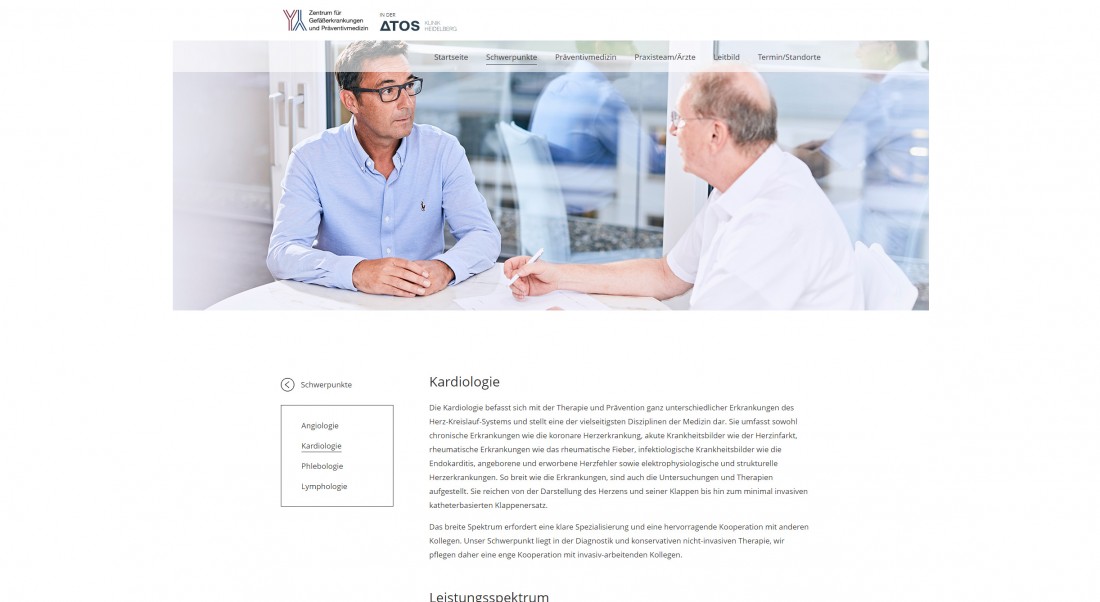 Website mit platoCMS für die ATOS Klinik in Heidelberg.