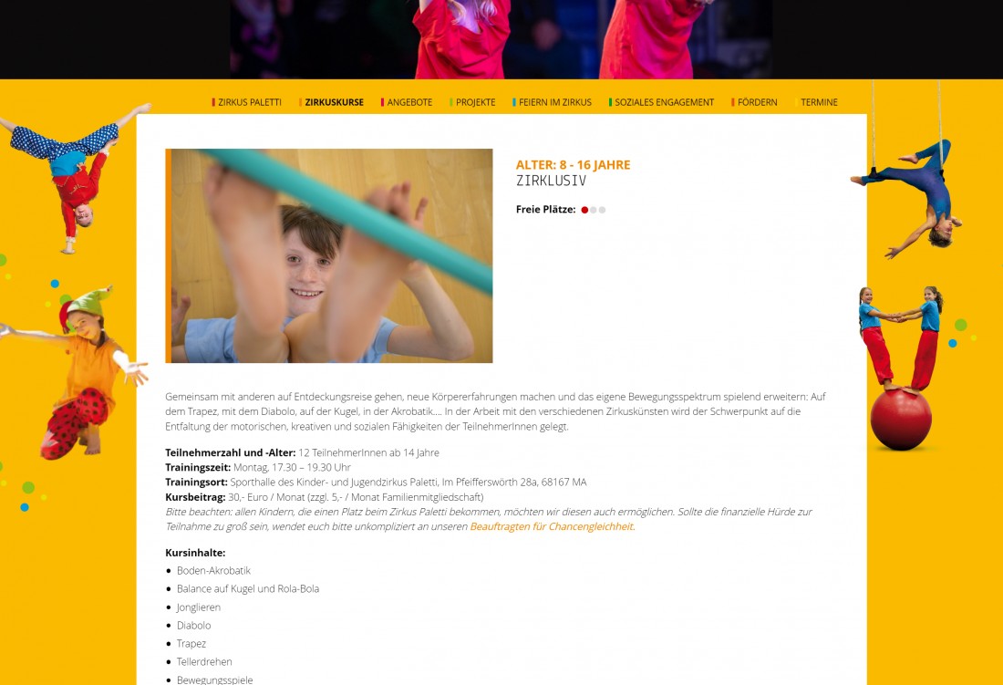 Umfangreiche Seite mit CMS und Modulen für den bekannten Kinderzirkus in Mannheim