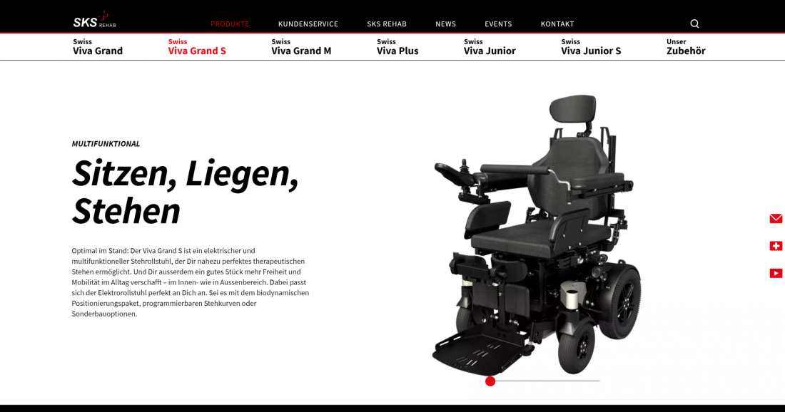 Website mit vielen Modulen und platoCMS für einen Rollstuhl Hersteller aus der Schweiz