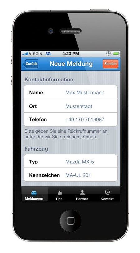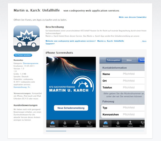 Entwicklung einer iPhone App zur Schadensmeldung bei Autounfällen für Martin & Karcher KFZ Sachverständige.