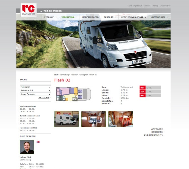 Der bekannte Mannheimer Reise- und Wohnmobil-Verleih RC Mannheim erhält einen neuen Webauftritt auf Basis von platoCMS, mit dem alle Inhalte auf der Seite verwaltet werden können.