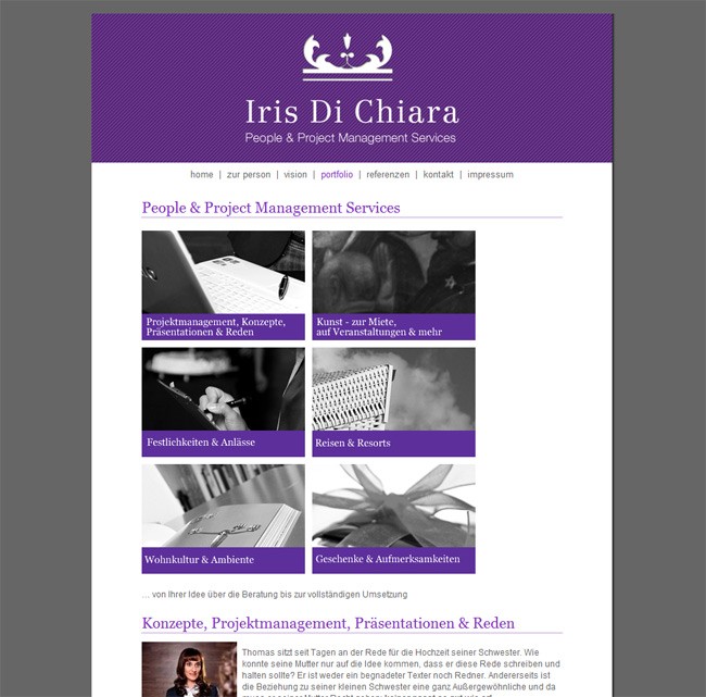 In Teamarbeit mit mahagoni Design aus Mannheim entstand die Website für Iris Di Chiara.