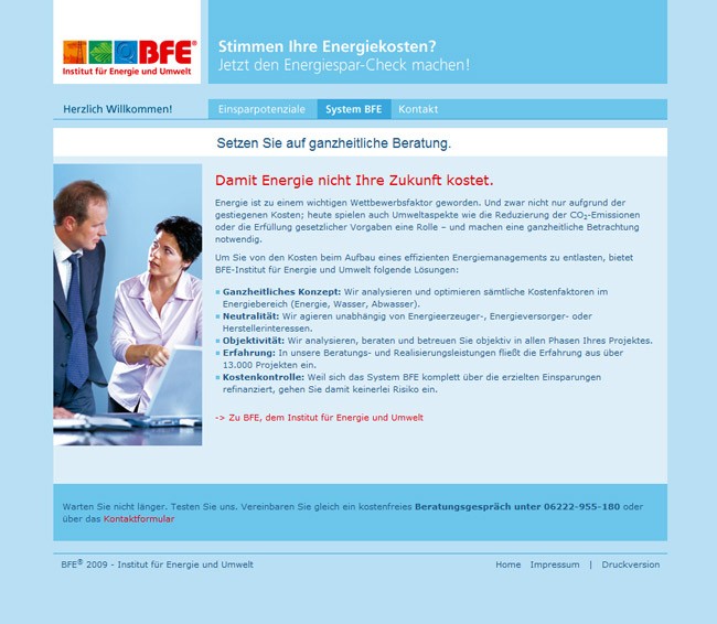 Hierfür bekam der Energiesparspezialist BFE - Institut für Energie und Umwelt eine eigene Kampagnenseite. Die Idee und das Design kommt aus der Feder von südpool