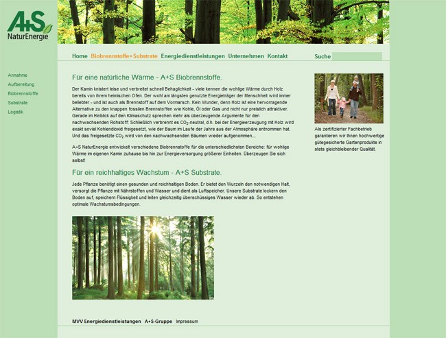 Für den Biobrennstoff-Hersteller und Energiedienstleister A+S NaturEnergie GmbH wurde der neue Webauftritt zusammen mit Südpool ins Netz gestellt. Auf der Seite gibt es Informationen rund um erneuerbare Energien.