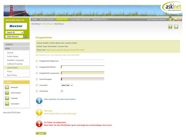 Zusammen mit ultrabold wurden für AskNet Vorlagen auf HTML Basis erstellt, die auf ein System aufgesetzt werden sollen. Dabei wurden Javascript Klassen speziell für dieses Projekt programmiert.
